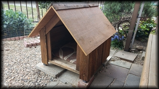 モコが犬小屋の入口側の板を、かじって壊したので、廃材で修理した。
