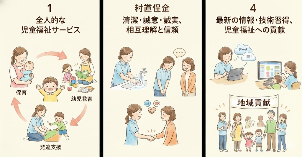 3 常に最新の情報と技術の習得を心がけ児童福祉(保育・幼児教育・発達支援)への貢献を目指します。