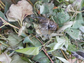 暑すぎるのか、羽根が変形している蝉が庭に、いました。